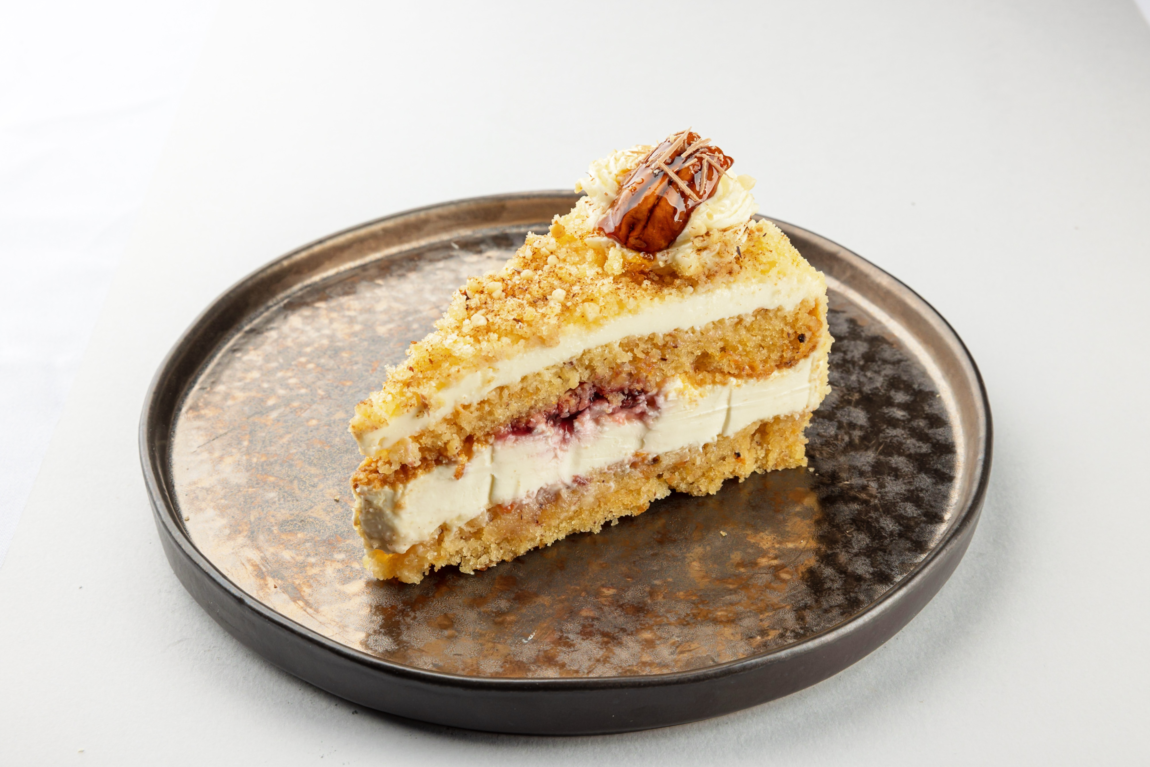 Složení: Sumix plain: mouka, cukr, sušený glukózový sirup, vaječný bílkový prášek, vaječný prášek, kypřícíčinidlo( disforečnan sodný, bikarbonát sodný), laktóza (mléko)sladká sušená syrovátka (mléko) sůl, emulgátory (E 471), zahušťovadla (xanthanová guma), mrkev, cukr, mouka pšeničná hladká, rostlinný olej, ořechy (arašídy, lískové ořechy), rozinky, jedlá soda, kypřící prášek, skořice, sůl, vejce, mascarpone, citronová šťáva, mléko, višňová náplň (višně 50%, ovocný protlak, glukózový sirup, modifikovaná škrob e1422, cukr, kyselina e330, konzervant e202, zahušťovadlo e418, aroma, voda. Ozdoba: Pekanové ořechy, skořice.828,00 Kč