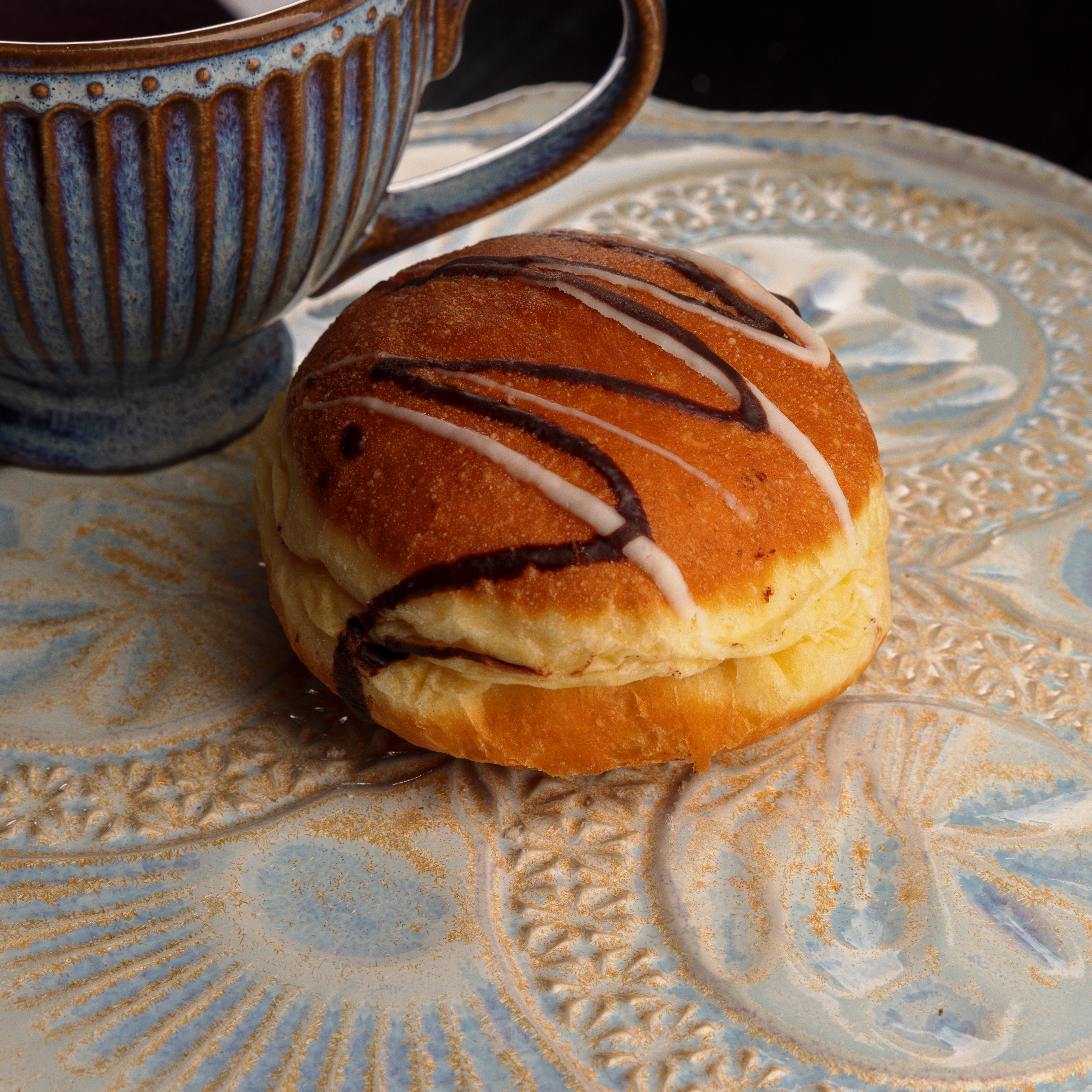 pšeničná mouka, rostlinný olej řepkový, cukr, vaječná melanž sušená, sůl, emulgátory, E471, E472e, E322, E516, želírující látka, zahušťovadlo E412, enzym, látka zlepšující mouku E300, aroma, barviva E 160e, E101, náplň nugátová 20% (cukr, rostlinný tuk, kakao, sušená syrovátka, lískooříšková pasta 1,5%, emugátor E322, aroma, sůl), cukrářská poleva (cukr, rostlinný tuk, kakaový prášek, emulgátor (E322, E476), přírodně identické aromata)